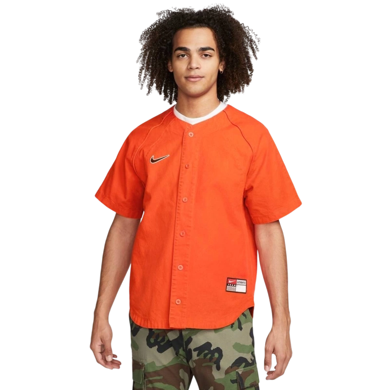 Koszulka Nike SB Baseball Jersey nawiązuje do amerykańskiej rozrywki i najbardziej kultowych miast kultury deskorolkowej, naśladując klasyczny wygląd koszulki meczowej dzięki charakterystycznemu krojowi zapinanemu na guziki, lamówkom na ramionach i wszywanej metce u dołu. Mocne szwy i wzmocniona bawełna zapewniają trwałość i wygodę zarówno podczas intensywnej jazdy na desce, jak i gry w baseball.