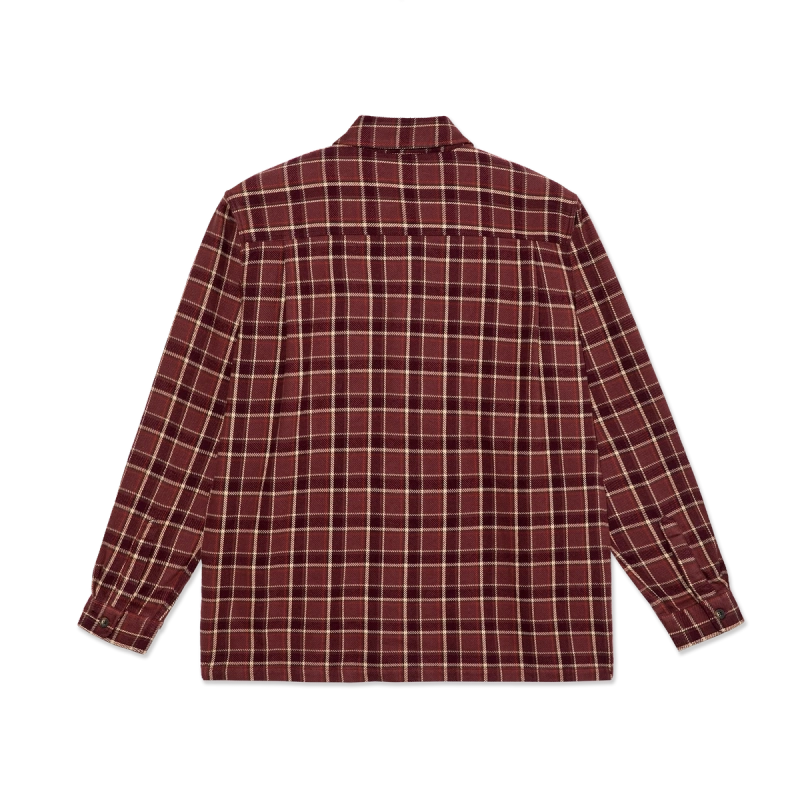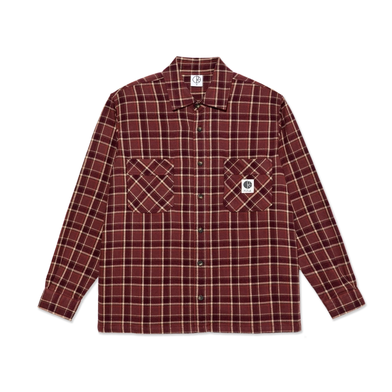 Koszula Polar Mike LS Shirt | Flannel (Oxblood Check) to wysokiej jakości, męska koszula z długim rękawem, zaprojektowana z myślą o trwałości i komforcie noszenia podczas jazdy na deskorolce, jak i codziennego użytkowania. Charakteryzuje się klasycznym krojem i wykonana jest z grubej, szczotkowanej flaneli bawełnianej, zapewniającej optymalne ciepło i miękkość. Krój pozwala na swobodę ruchów, a solidne szwy gwarantują odporność na przetarcia i uszkodzenia.